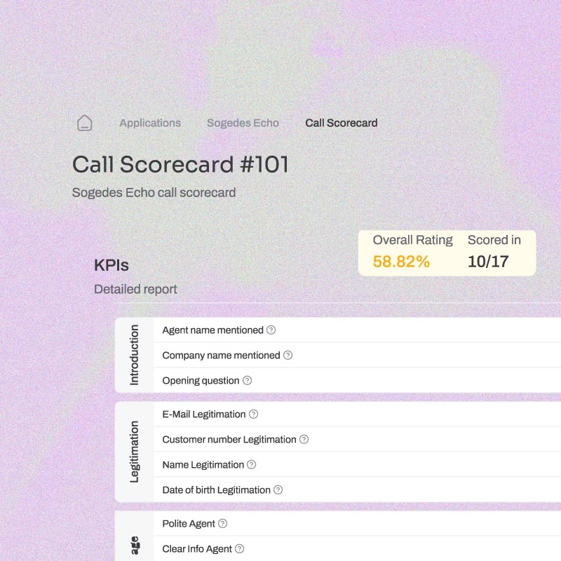 • Scorecards (Compliance, Bot-Qualität, Coaching)