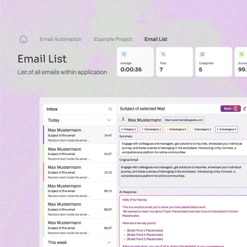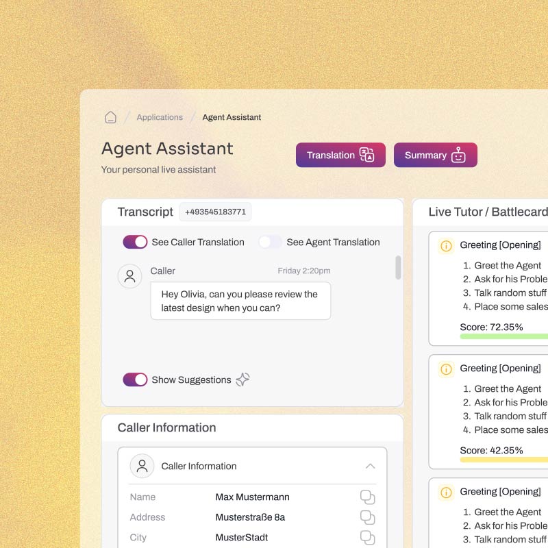 Der Bedarf startet oft bei einem einzelnen Agent. Der nächste Schritt ist fast immer End-to-End: konsistente Experience für Kunden und Mitarbeiter über Voice, E-Mail, Agent Desktop und Backoffice – plus messbare Qualität und Kostenkontrolle.Die ai.fctry Plattform sorgt dafür, dass Sie nicht neu bauen müssen, wenn Ihr Setup wächst.