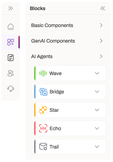 • Multi-Agent Flows (z. B. Wave → Star → Agentic → Echo)